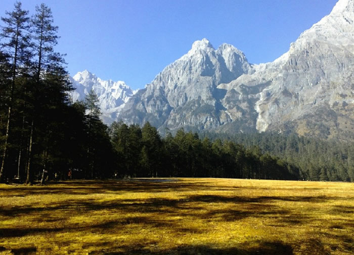 玉龙雪山位于丽江的西北部,距离县城约15公里,它是北半球距离赤道最近的雪山,整座雪山由十三峰组成,由北向南呈纵向排列,延绵近50公里,东西宽约13公里。 玉龙雪山因为山体气候垂直分布,植被和自然景观极其丰富。雪峰下有高山草甸,牦牛在广袤的原始森林旁悠然散步,远处的木楞房里不时传出藏族姑娘的歌声,冰川、峡谷、瀑布,还有在不同高度依次开放的杜鹃花。玉龙雪山主峰常年大部分时间都在云雾缠绕之中,有“神龙见尾不见首”的说法。